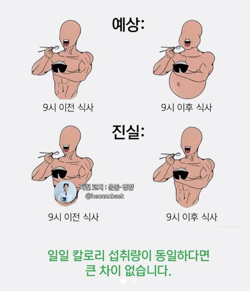 - 밤 9시 이후에 먹는다고 해서 무조건 살이 찌는 것은 아닙니다.
