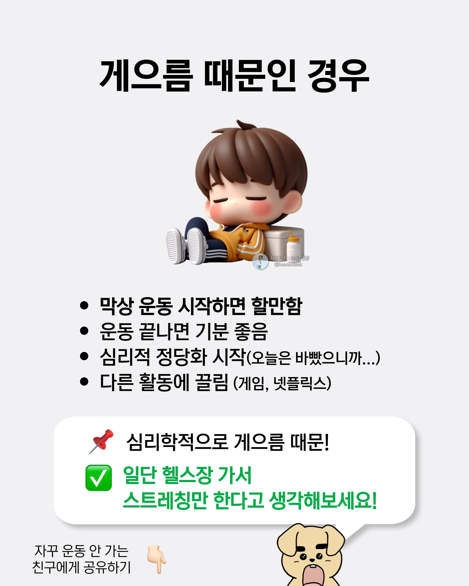 - 운동 시간이 길게 느껴져서 시작 자체를 미룹니다