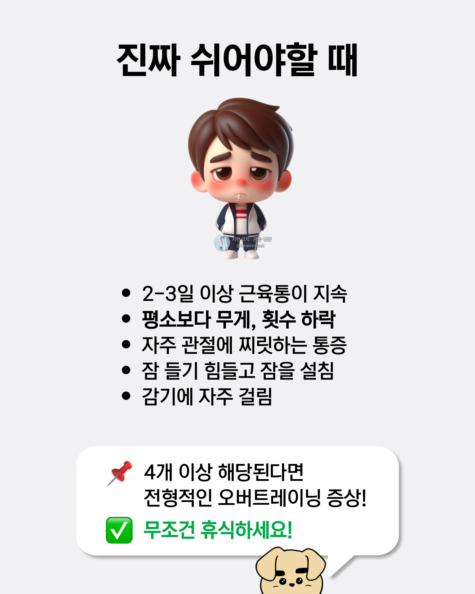 오늘 운동을 쉴지 갈지 고민되시나요? 게으름과 진짜 피로를 구분하는 체크포인트와, 오버트레이닝 신호 및 회복 루틴을 한눈에 정리했어요. 운동 쉬는 날도 전략적으로 운영해보세요.