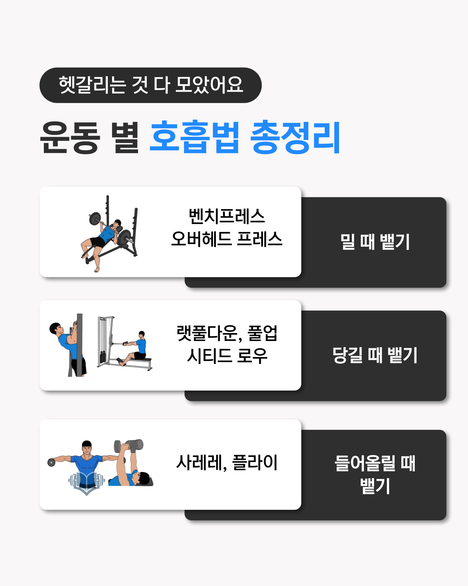 운동할 때 숨 쉬는 타이밍이 애매해서, 들이쉬어야 할지 뱉어야 할지 순간적으로 멈칫한 적 있으신가요? 😅 벤치프레스, 스쿼트, 풀업… 운동을 오래 했어도 여전히 맞게 하고 있나 싶은 게 바로 호흡법입니다.